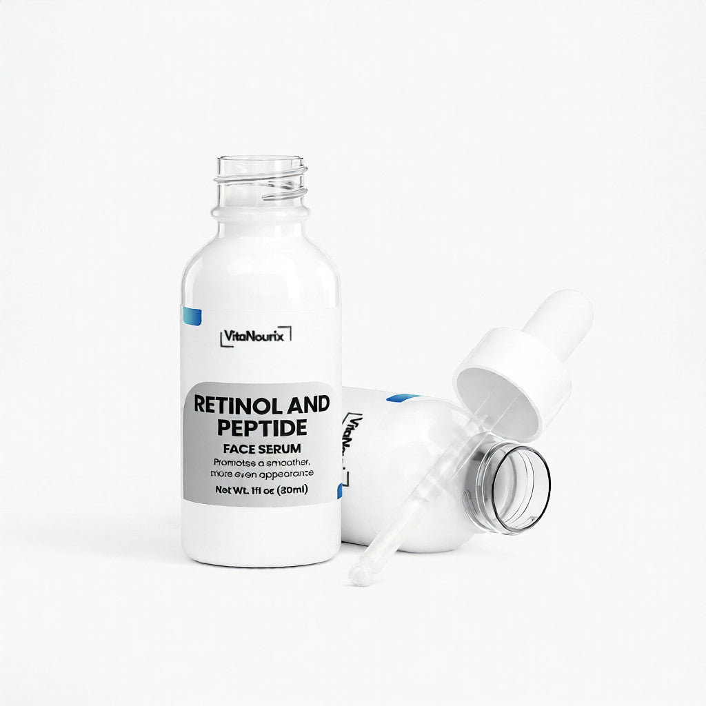 Our Retinol and Peptide Face Serum is crafted to refine and refresh the skin’s appearance overnight. Retinol, known for its smoothing properties, works together with peptides to support the look of skin firmness and texture. The result is a complexion that appears more even and polished over time.